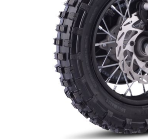 Front 14″, Rear 12″ knobbly off‑road tyres |